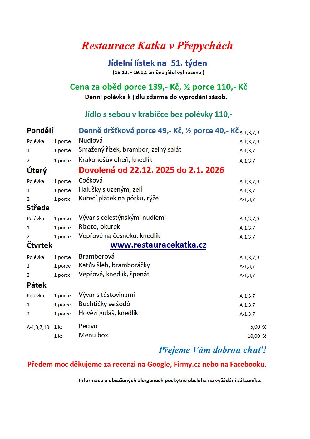 Jsme rodinná firma provozující místní restauraci Katka, která se nachází v malebné obci Přepychy u Opočna. V pracovní dny otevíráme od 9 hodin na svačiny, kde nabízíme i mimo jiné denně dršťkovou polévku a na oběd dva chody hlavních jídel + minutky. Novinkou je jídlo s sebou v krabičce, kde je možnost ohřátí v mikrovlnné troubě. U nás máte také možnost pořádat rodinné oslavy, společenské akce, firemní večírky, školení, svatby, v letních měsících možnost venkovního grilování s posezením. Součástí restaurace je útulný sál s kapacitou 80 míst, s možností jej zvětšit o předsálí pro dalších 20 osob. U restaurace se nachází letní zahrádka s dětským koutkem. Nad restaurací jsou ubytovací prostory, kde zajišťujeme ubytování pro firmy i jednotlivce, případně dlouhodobé, celoroční ubytování.